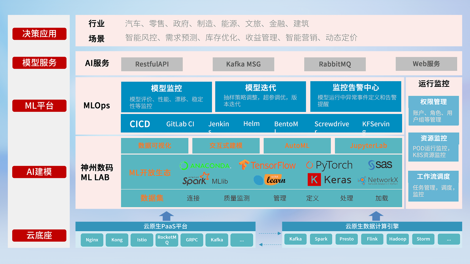 数据+模型双引擎驱动,,,,面向智能服务场景,,,,快速灵活利用AI技术,,支持业务决策,,助力企业智能化转型破局。。